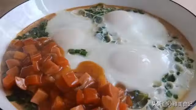 2、裡面的配菜可以根據自己喜歡的菜品去調換,像火腿腸可以換成胡蘿蔔。