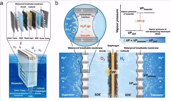 該團隊後來又研製了全球首套海水原位直接電解制氫設備,每小時可對400升海水進行制氫,在2023年6月份,又聯合其他單位進行了現場實驗,成功連續運行了3200小時。