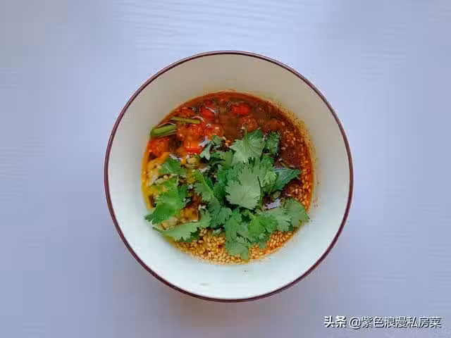 3.再放兩勺生抽,兩勺香醋,一勺代糖,一勺蚝油,適量的鹽,放香菜拌勻,酸辣汁就做好啦!