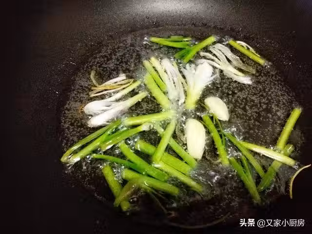 4、待蔥白邊沿稍稍上色就可以放入蔥葉,繼續小火慢慢炸,炸到蔥葉焦黃,就可以控油撈出備用。如果想放芝麻可以這時候撒一些生芝麻。芝麻這個純屬個人喜好,如果是熟芝麻就不用炸了,最後撒一些就可以了。