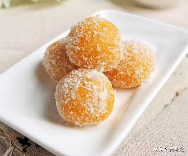 南瓜200g、糯米粉150g、糖適量、椰蓉適量。