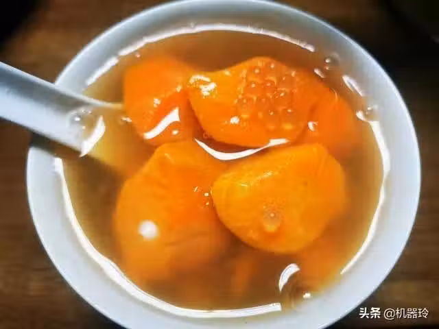 2、紅薯去皮,放砂鍋中,加清水煮至紅薯熟透,放紅糖煮至融化,然後加入提前煮好的西米攪拌均勻就可以了,特別簡單一道甜品。