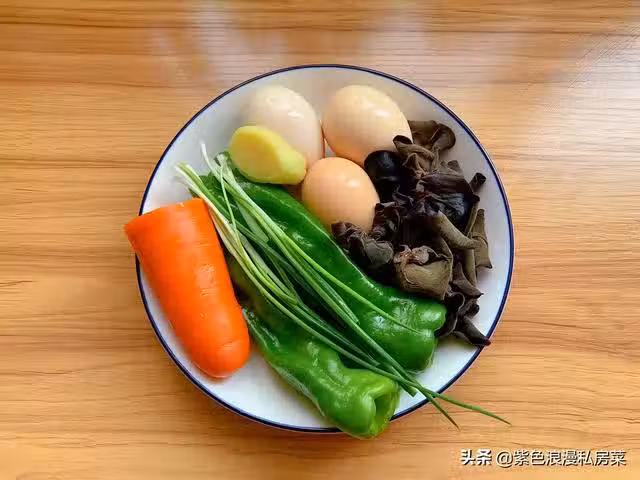 1.準備食材並清洗乾淨,木耳放一勺白糖提前泡發(木耳中放一勺白糖,可以快速泡發)。