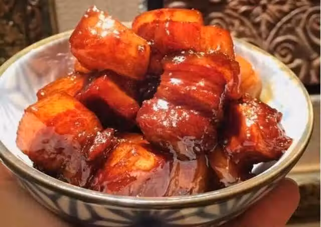 3.然後加入醬油,以高火燒開,以低火燒開後煮至味覺,然後與豬肉一起放入鍋中,取出,打開蒸鍋,蒸至油膩,撒上切碎的蔥和服務。
