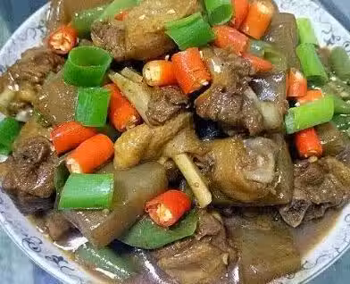 1.將鴨子切成小塊,然後用醬油,料酒,生薑和鹽腌制半小時