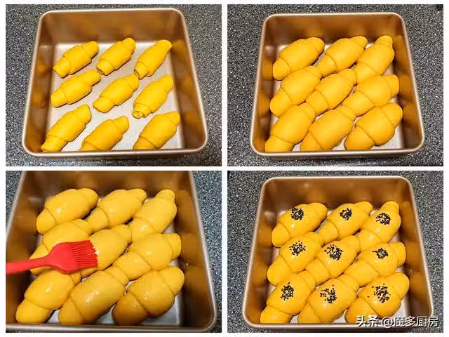 6、在發酵好的面卷表面刷一層雞蛋液,再放一些黑芝麻;