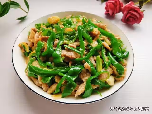 3.鍋內放油,放生薑大蒜爆香,放入肉絲翻炒,肉絲炒斷生後放入青椒,翻炒至青椒變色,放適量的鹽,放胡椒粉雞精,翻炒均勻即可出鍋。
