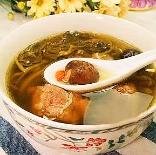 西洋菜500克、排骨250克、南北杏20克、羅漢果12個、姜3片