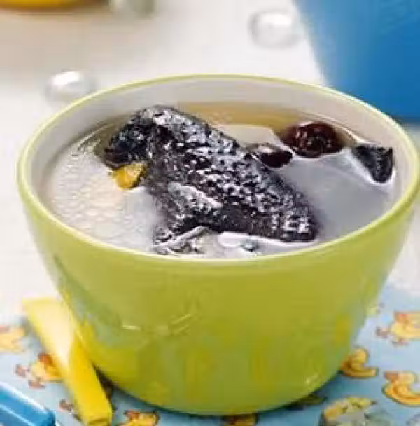 2、將烏雞。荷葉。姜。蔥及各種調料放人壓力鍋中,加入湯。燒開。加壓10分鐘,冷後倒人砂鍋中燒開,上桌,可加少許時令綠葉菜。