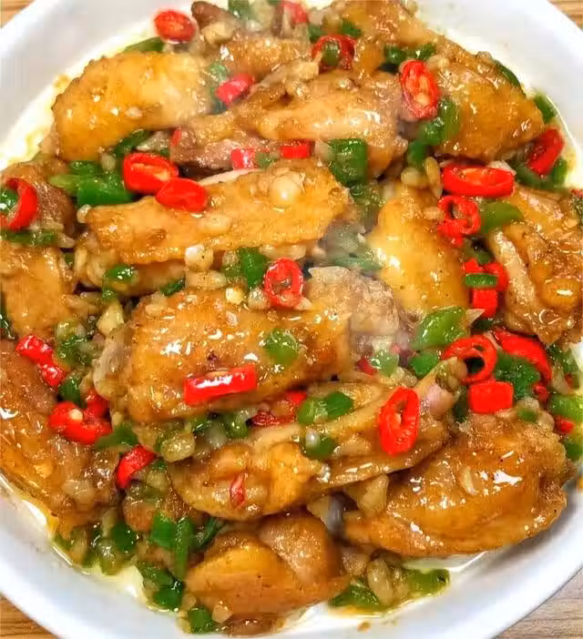 食材準備:雞翅,鹽,白糖,蚝油,大蒜,小蔥,青紅小米椒等。