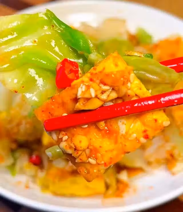 步驟三:料汁淋在包菜和雞蛋上,翻拌均勻即可。