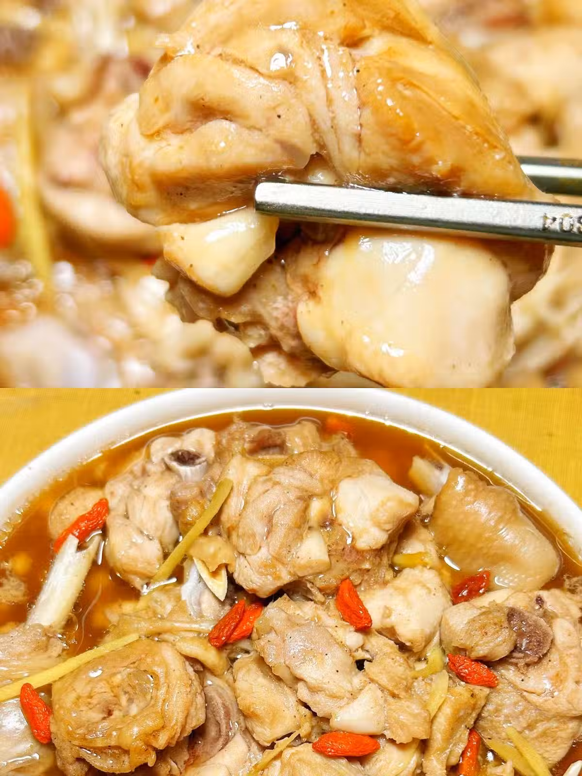 [二R]金針菇鋪底,腌制好的雞肉塊放上面,三鍋蒸20分鐘,撒上枸杞,即可出鍋啦