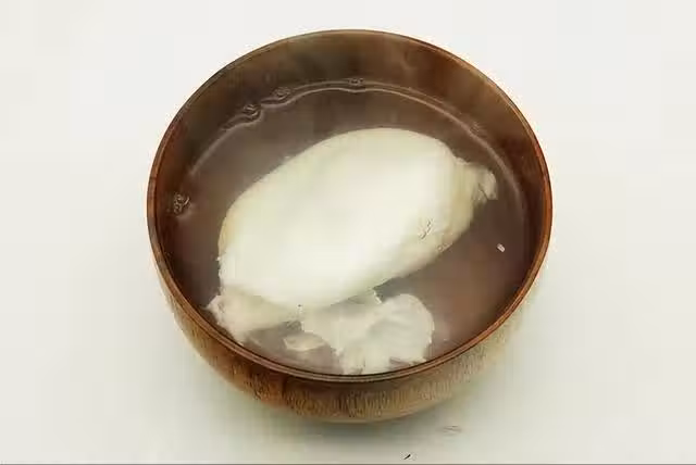 4、它就是白醋,放上3、4滴白醋就行,加上白醋之後,其中就不會再出現白沫了,這是第二招。這樣蓋上蓋子,靜置1分鐘左右,利用鍋內的餘溫,可以讓雞蛋初步定型,1分鐘之後再開火。