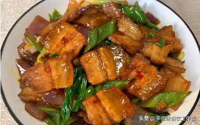 五花肉,青椒,蒜苗,洋蔥,蔥姜蒜