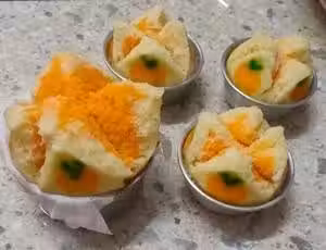 材料: 糖 240g 水 500ml 油 1湯匙自發麵粉 510g 做法: 先將糖、水、油拌均勻,在加入過篩自發麵粉拌至無顆粒 分一點麵糊青色葉子 橙色橘子。 將紫色分別倒入模8分滿 再上一層白色麵糊 用牙籤點一點油畫+字然後做橘子花樣 大火蒸20分鐘即可