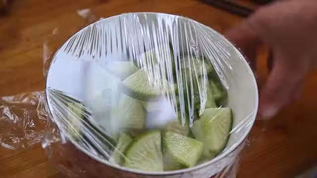 第五步:腌制三個小時以後會發現腌制了很多蘿蔔水。,把水倒出來放入薑片,小米辣,一勺白糖,泡野山椒,一勺生抽,一勺醋,用筷子攪拌均勻,然後包上保鮮膜腌制12個小時以上,腌制入味。