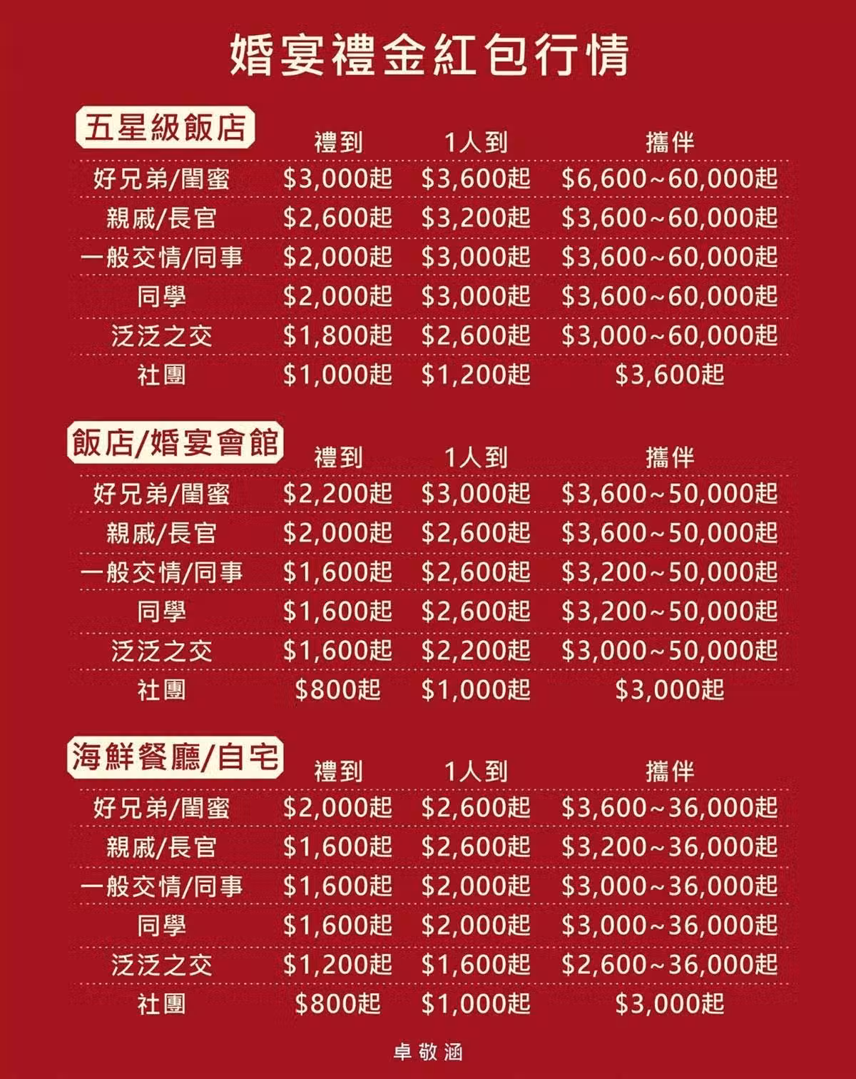 到底該包多少?網友公開「最新婚宴紅包行情表」 一看「最頂超狂金額」全網看傻:以後能免則免