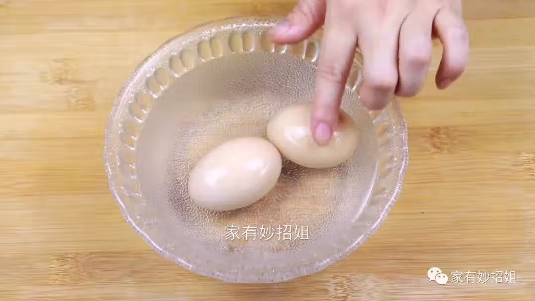我們將雞蛋撈出來後,直接放入冷水中過涼,這樣不僅可以使雞蛋快速的降溫,而且一冷一熱的刺激也會使雞蛋殼更好剝開來。