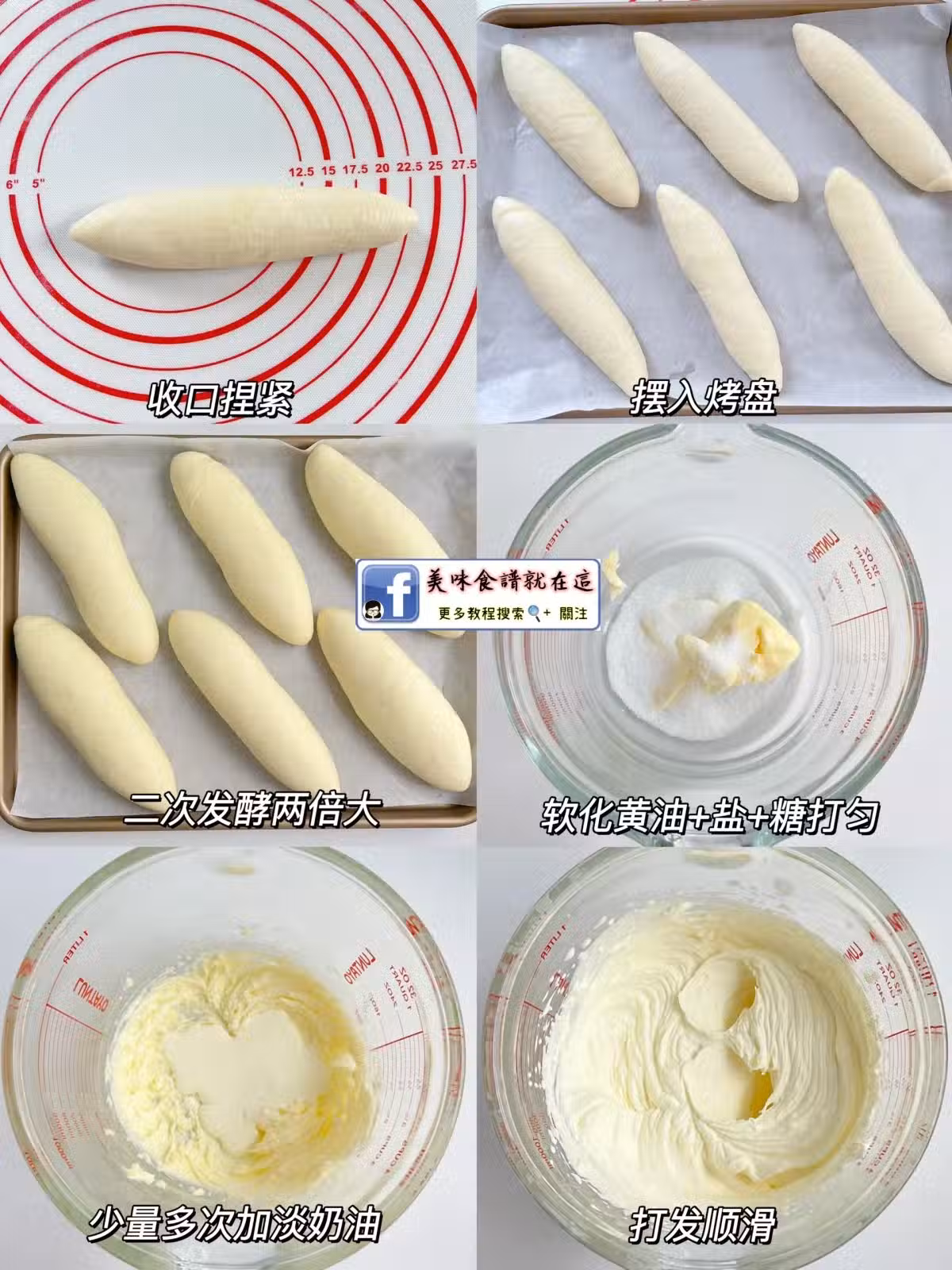 3️⃣製作咸奶油:黃油室溫軟 化+糖+海鹽打發,淡奶油少量多次加入,打發裝入裱花袋