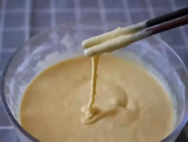 第三步,攪拌均勻,靜置一會,讓蛋液和澱粉充分混合,記得用勺子背將其中的澱粉顆粒在碗邊壓碎,攪拌成為比較細膩的蛋糊,記得不要加水;