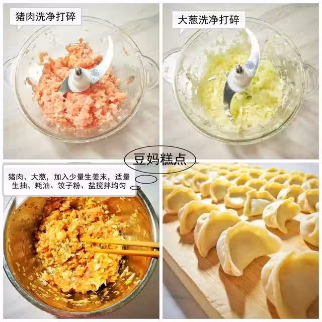 1、豬肉洗凈打碎;大蔥洗凈打碎;