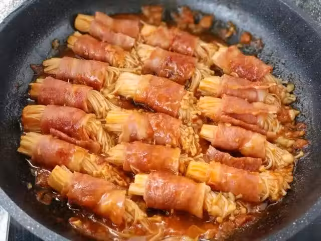 2、 煎培根翻面的時候要小心,不要散開了。