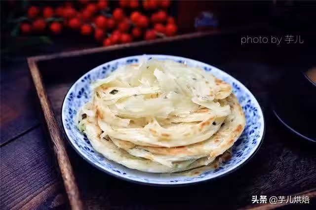 【食材】:麵粉250克,開水100克,清水40克,鹽適量,蔥花30克,花生油 30克。