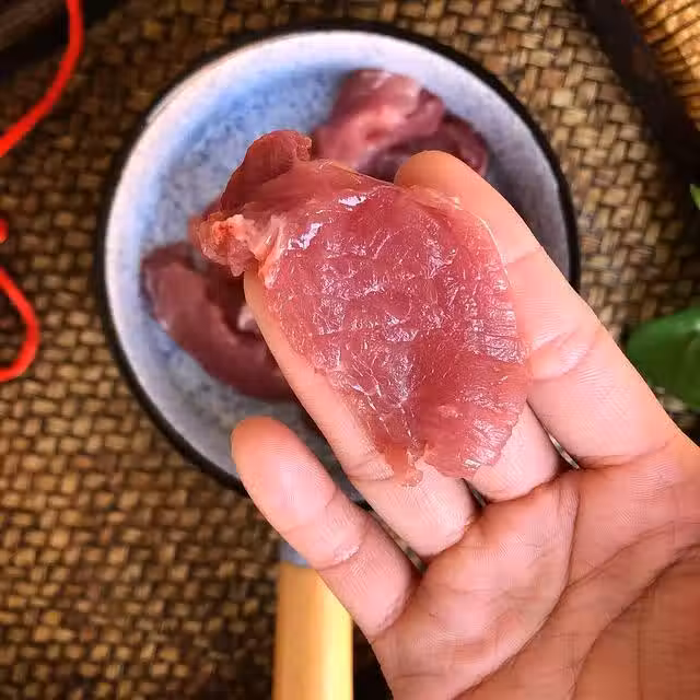 往肉片中加入蒜泥、雞精、鹽、胡椒粉、白砂糖、五香粉、醋抓取均勻入味。蓋上保鮮膜,放入冰箱冷藏腌制1個小時左右,這樣肉會更加入味。分享調料的幾個注意事項: