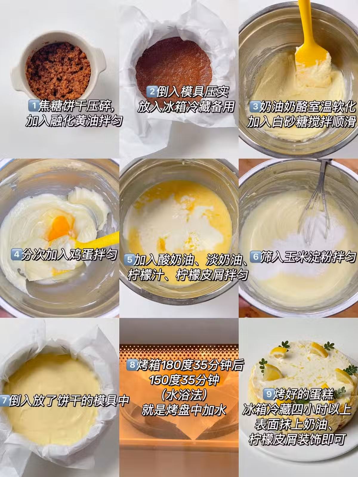 1️⃣餅乾敲碎加入融化黃油,鋪入模具底部壓實,冰箱冷藏備用