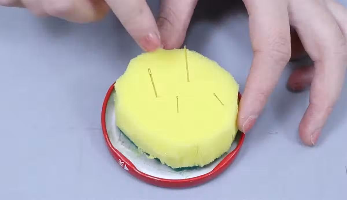 製作好之後我們就可以在上面收納我們的針了,就不用擔心了,我們這個針太細了,到處亂放會扎到我們