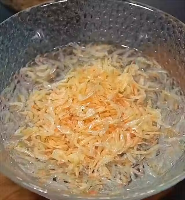 步驟二:鍋中燒油,爆香蝦皮,加西紅柿丁翻炒出湯汁,然後倒入煮好的雙米粥,繼續煮3分鐘,然後再加入香菇和青菜碎繼續煮2分鐘,攪拌均勻,即可。