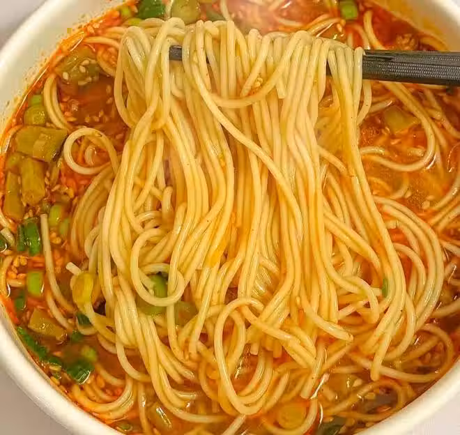 步驟二:鍋中水開以後下入自己喜歡吃的麵條,麵條煮熟以後撈入碗中,再加入兩勺煮麵的麵湯,攪拌均勻,美味即成。酸辣開胃,特別好吃。