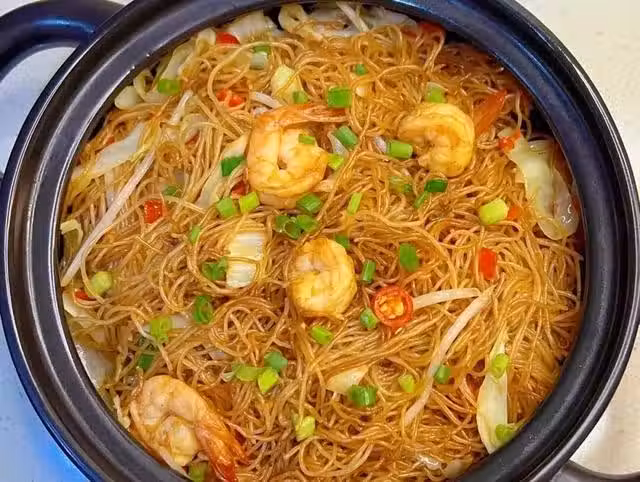 步驟:蒜末小火炒香盛出備用;在砂鍋底部刷一層油,鋪上薑片和蔥段;鋪上金針菇和泡軟的粉絲;鋪上蝦;鋪上料汁和小米辣,淋上兩大碗清水,蓋上蓋子煮五分鐘左右即可。