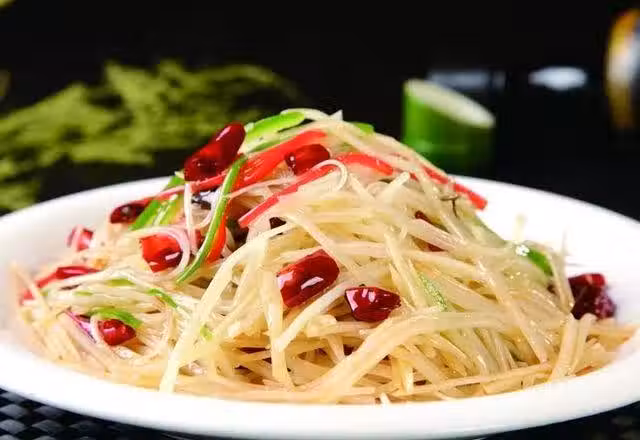 ⑧菜熟裝盤、整形,一盤酸酸辣辣脆脆的土豆絲就可以上桌了。