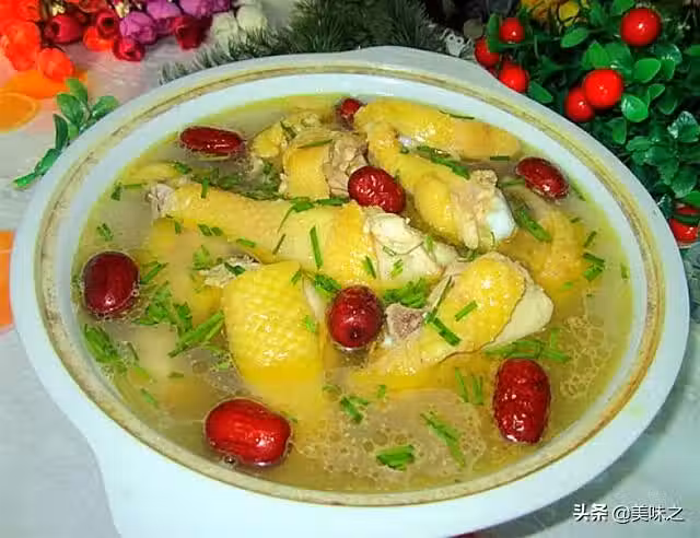 三黃雞1隻、紅棗數個、蔥末少許、鹽適量。