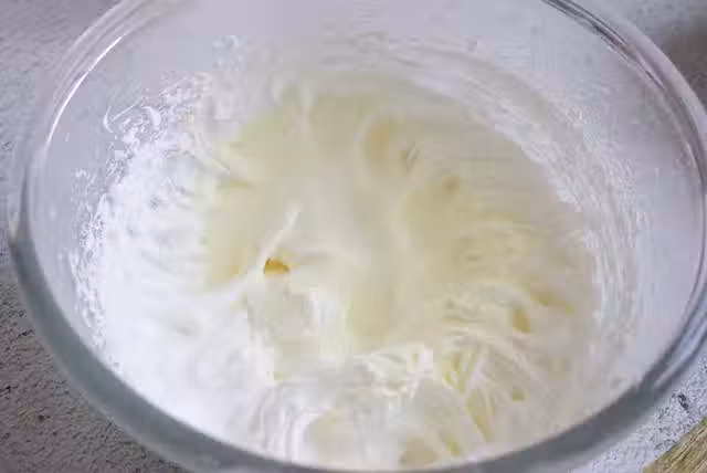 4、裝入裱花袋,裱花袋中要放一個裱花嘴,這樣做出來的蛋白糖才好看,圖中我忘了放裱花嘴,後來又塞進去噠!