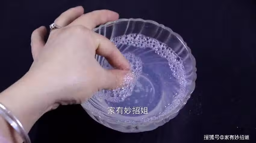 接下來,我們再把沾有502膠水的手指直接放到這個肥皂熱水中浸泡。