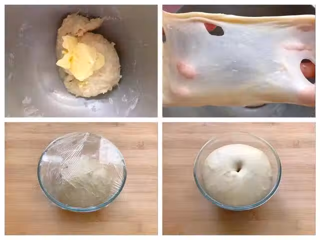 第五步:將排好氣的麵糰等分成6個劑子,每個劑子約重60克、將劑子滾圓之後蓋上保鮮膜鬆弛15分鐘。鬆弛好後將麵糰擀成圓餅,包上椰蓉餡,用虎口收口,收口的時候一定要捏緊,將包好的椰蓉包鬆弛10分鐘。