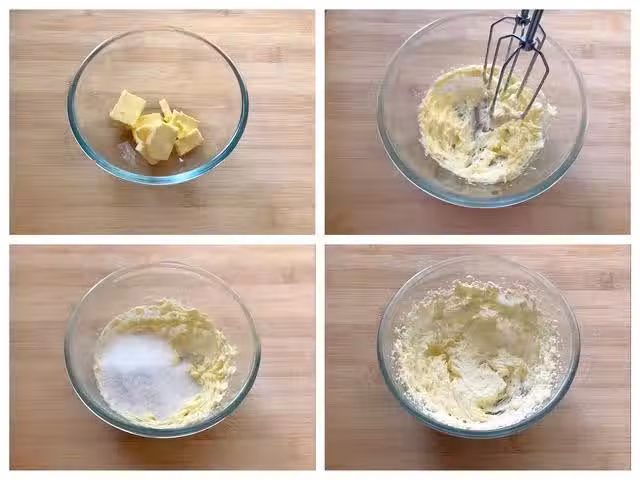 第二步:黃油打發好後分次加入蛋液,每加一次都要將蛋液與黃油充分攪拌均勻,再加入下一次的蛋液,直到蛋液加完為止。接著倒入椰蓉,用矽膠刮刀混拌,最後倒入牛奶攪拌均勻即可,將製作好的餡料放入冰箱內冷藏備用。