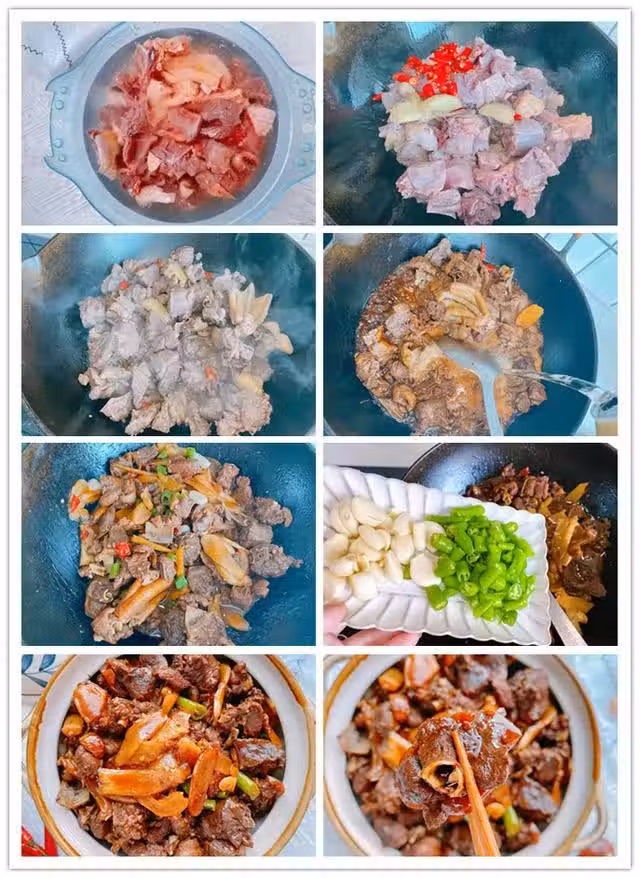 3、最後加入青椒段和大蒜,開大火收汁,大約2-3分鐘,關火出鍋;好吃的紅燒鴨肉完成,鴨肉緊緻,咸香入味,帶有一點微辣,非常開胃;