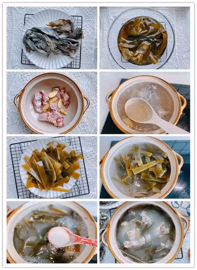 4、海帶燉煮10分鐘左右,加一勺食鹽調味,繼續小火燉煮,燉煮到食材都軟爛,關火出鍋;出鍋前加少許白鬍椒粉,攪拌均勻,海帶排骨湯完成,軟爛入味,鮮香美味。