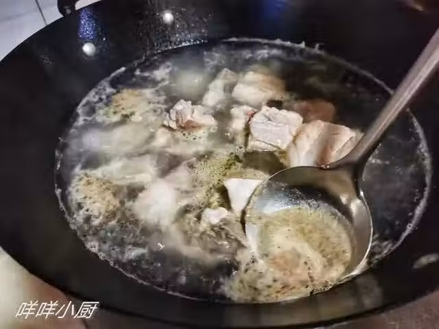 4、放入大蒜,加入適量的鹽繼續燉煮10分鐘左右,讓排骨入味熟透即可,可以用筷子夾一下看看能不能輕鬆脫骨,最後收湯汁到自己喜歡的程度,散上白芝麻出鍋。