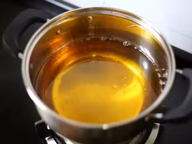 7、然後把雞胸肉放入油鍋,先用中小火炸8分鐘,8分鐘後撈出雞排,接著再轉中大火將油溫升到最高,然後再把雞胸肉下油鍋復炸1分鐘左右,就可以控油出鍋了。前面用中小火炸8分鐘是為了讓雞胸肉熟透,後面中大火高溫復炸,是為了讓表殼吃起來更脆,而且還能逼出雞排里多餘的油。