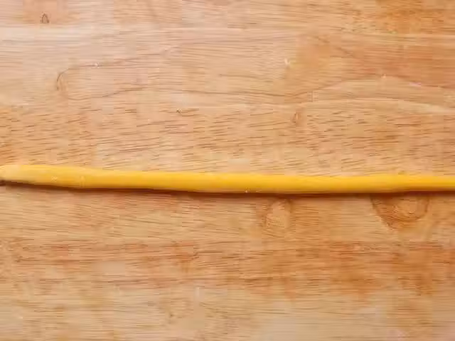 8、再用刀切成小粒狀,剩下的麵糰依次操作。將切好的芋圓生胚倒入容器內,撒入少許木薯粉,晃動盒子,讓每一個南瓜芋圓都裹上些許木薯粉,這樣可以起到防粘作用。千萬不要撒得過多,要不然裹太多粉的話,待會煮起來表面不光滑,會毛乎乎的。南瓜芋圓做好後,盒子表面記得蓋上蓋子,因為空氣接觸久了會變干,這樣煮熟後會特別硬