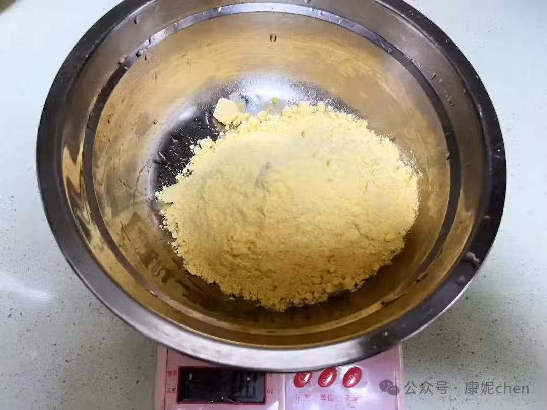 第一步:稱量200克玉米面,我買的玉米面比較細,玉米面可以用來做成玉米糊,也可以把玉米面和中筋麵粉結合做成玉米饅頭。