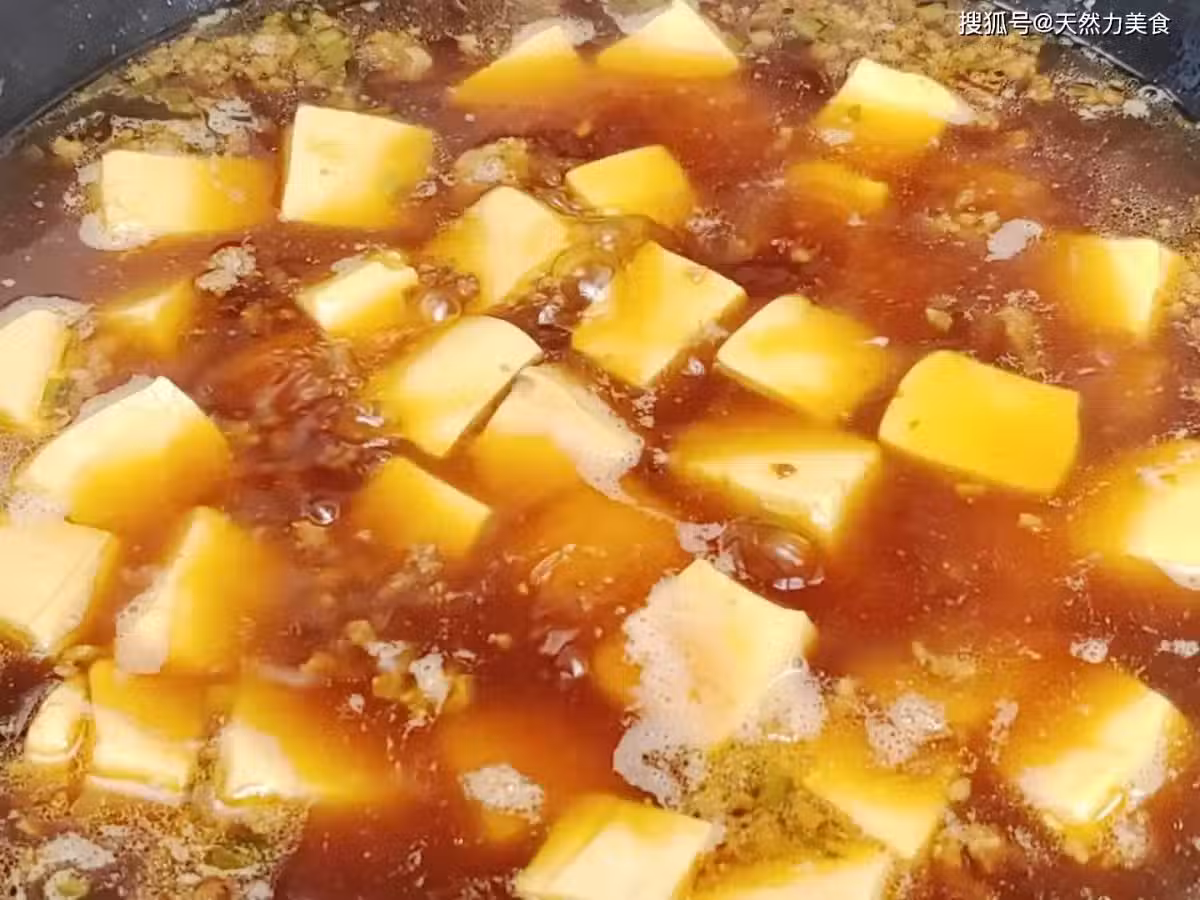 10、豆腐下鍋後儘量不要去翻動豆腐,這樣很容易把豆腐翻碎,我們可以用手勺或者鏟子沿著鍋底往一個方向推,這樣就可以保持豆腐的完整性。