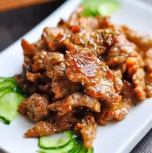 牛三岔250g、油適量、鹽適量、胡椒粉適量、老抽少許、澱粉適量、孜然芝麻適量