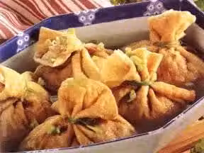 主料:福袋(豆皮兒)5片,香菇4朵,筍1根,胡蘿蔔1/2根,碗豆仁40克,松子40克,竹蓀6條,芹菜3棵(1)醬油1大匙,糖1茶匙,鹽1/4茶匙,水澱粉1/2大匙(2)素高湯6碗,鹽1/2大匙,胡椒粉少許,麻油少許