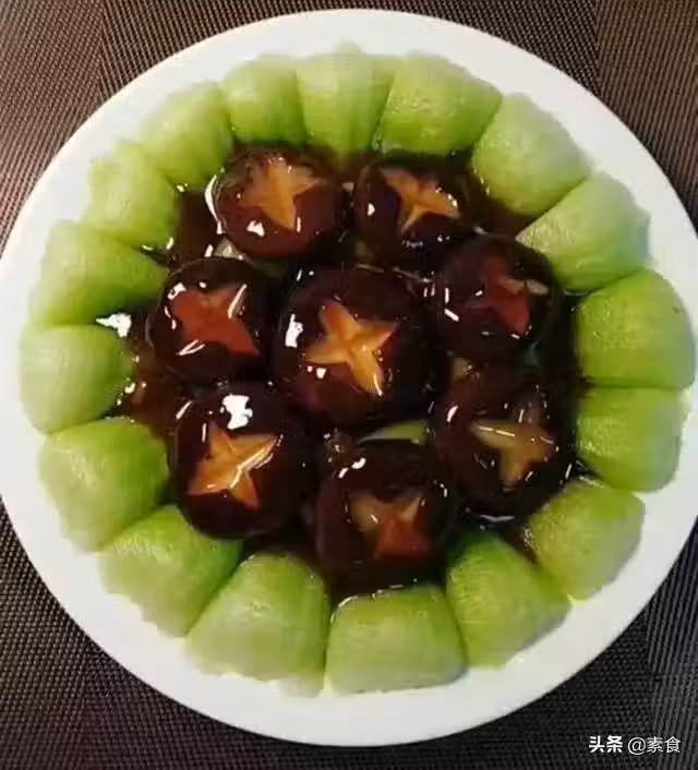 3、把香菇切去香菇根後洗凈,用刀在香菇表面划上十字花刀,或劃成自己喜歡的花型,鍋中放入水燒開後,下入香菇焯水燙熟。