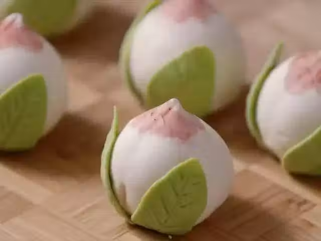 原料:麵粉500克,酵母5克,泡打粉5克,食用色素少許(紅,綠)